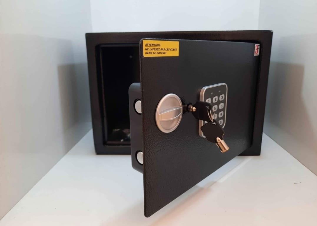 - ️ Système de Verrouillage Électronique : Le Coffre-Fort 3F est équipé d'un verrouillage électronique performant, facile à programmer et à utiliser, garantissant une sécurité sans compromis.
