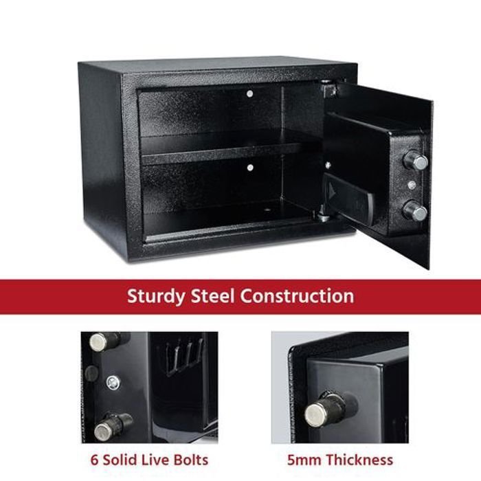 - ️ Construction Robuste : Construit avec des matériaux résistants aux tentatives de cambriolage, ce coffre-fort offre une protection fiable contre les accès non autorisés.