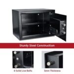 • ️ Construction Robuste : Construit avec des matériaux résistants aux tentatives de cambriolage, ce coffre-fort offre une protection fiable contre les accès non autorisés.