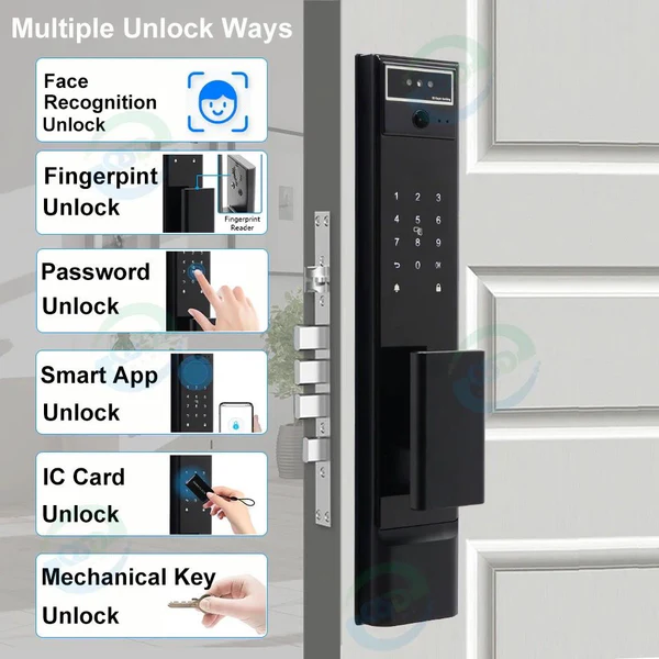 Accès Multifonction : En plus de la reconnaissance faciale, vous pouvez également utiliser un code PIN, une carte RFID ou votre smartphone pour ouvrir la serrure. La flexibilité à votre service !